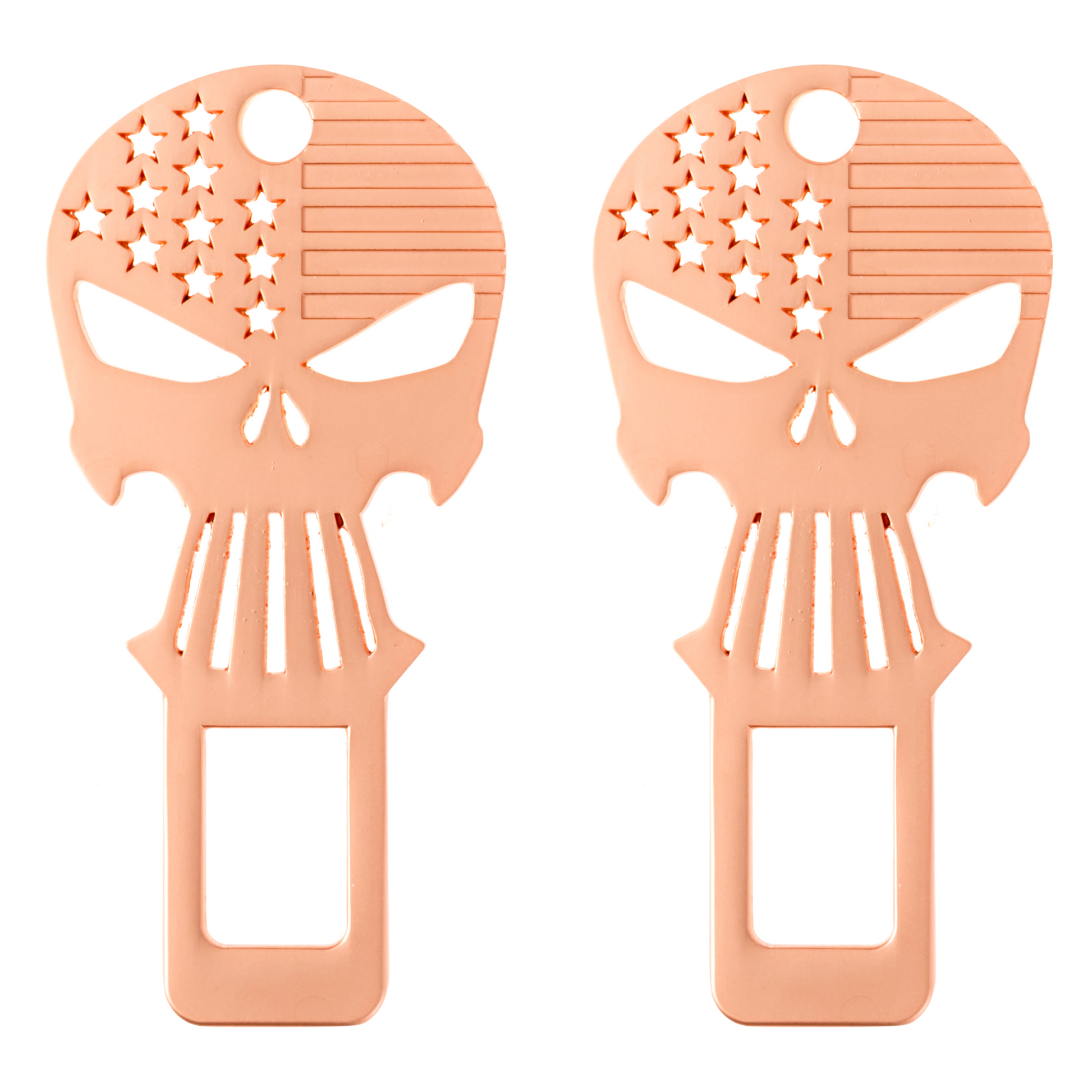 We are the ORIGINAL designer and manufacturer of this Punisher Skull Style American Flag Seatbelt Clip Alarm Silencer. Since we first brought this product to market, a number of other manufacturers have copied the design. "Imitation is the sincerest form of flattery", and we are flattered ;-) Thank you for choosing the original designer and American small business when purchasing your seatbelt clips; We appreciate you!